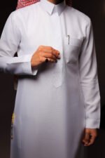 يعتبر قماش سميرميس مقلم خلية ابيض من الأقمشة الفاخرة والمميزة في عالم الأقمشة الرجالية, حيث تجمع بين الأناقة والراحة والجودة العالية. تتم صناعة قماش سميرميس مقلم من ألياف ناعمة وعالية الجودة, مما يجعله ناعماً وفائق الراحة. تتم معالجة هذا القماش بعناية باستخدام تقنيات صناعات نسيجية متقدمة بهدف الحفاظ على الخصائص المميزة لأليافه. يتميز هذا القماش بالخامة العصرية المقلمة على شكل خطوط طولية بارزة تضفي لمسة من الحيوية والتميز على القماش. يتوفر هذا القماش باللون الابيض السكري الاسود و الكحلي الذي يضفي لمسة من الدفء, مما يجعله خياراً مثالياً لمن يبحثون عن إطلالة متميزة ومنفردة.